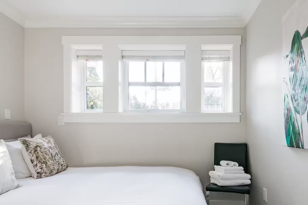 The two beautifully appointed bedrooms at Maison Q are designed for ultimate elegance, comfort, and tranquility. Each space features plush bedding, high-quality linens, and carefully curated decor that blends modern sophistication with a serene, restful ambiance. Soft lighting and thoughtful touches create a retreat-like atmosphere, perfect for unwinding after a day of exploring Vancouver. Whether you’re curling up with a book, enjoying a peaceful night’s sleep, or simply taking in the quiet charm of your surroundings, these bedrooms offer a luxurious haven where relaxation comes naturally.